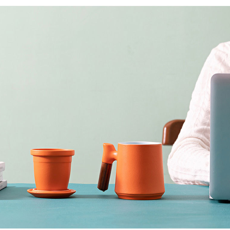 陶瓷馬克杯帶蓋過濾辦公杯個人杯茶水分離杯公司送禮禮盒刻字LOGO